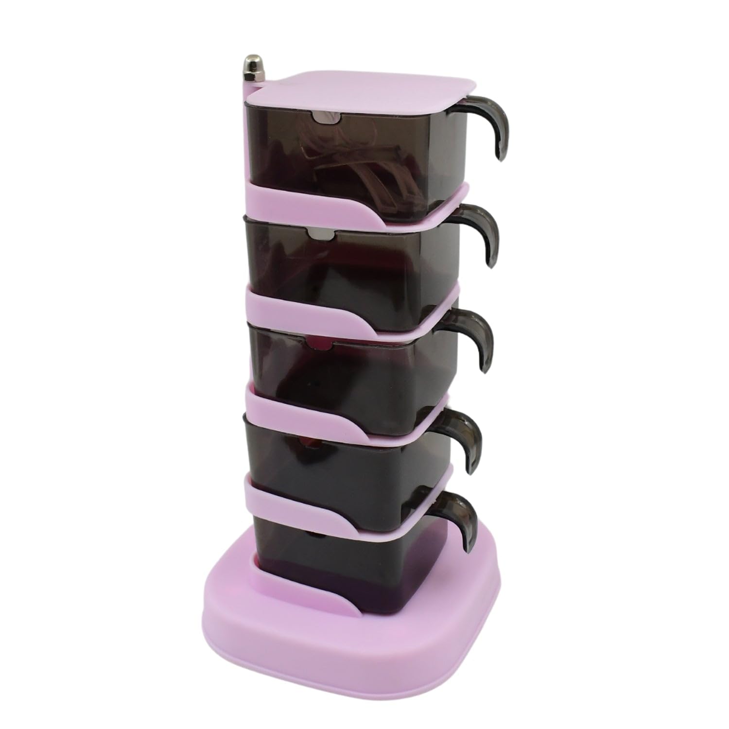 Organize your kitchen spices neatly with this space-saving vertical seasoning box. The rotating stand gives quick access, while each container comes with a lid and spoon to keep spices fresh, clean, and easy to use. Perfect for storing salt, sugar, masala, and dry herbs in a tidy and convenient way.